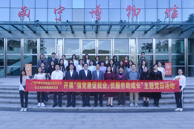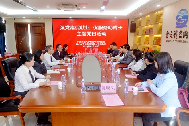 为深入贯彻党的二十届四中全会精神,推动党建工作与育人就业深度融合,2025年11月14日,云之龙咨询集团有限公司党总支与广西开放大学(广西信息职业技术学院)数字经济与管理学院党总支联合开展“强党建促就业,优服务助成长”主题党日活动,以高质量党建引领人才培育与就业服务,开启校企协同发展新篇章。