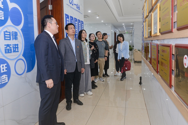 活动伊始,广西开放大学(广西信息职业技术学院)数字经济与管理学院党总支一行来到云之龙咨询集团总部大楼,共同参观了云之龙总部办公区、企业文化展厅与党建长廊,深入了解云之龙的发展历程、企业文化及在政府采购咨询领域的专业实力与人才需求。通过实地走访,校方对企业的业务生态和用人标准有了更直观的认识,为后续精准对接人才培养与就业需求奠定了坚实基础。