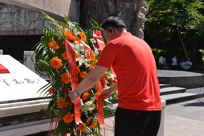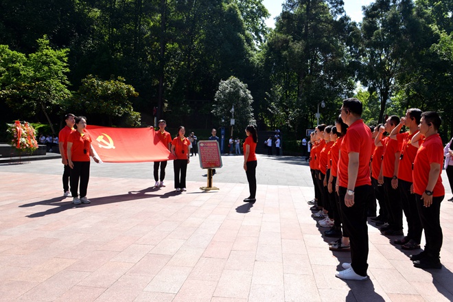 在红军烈士纪念碑前,党支部敬献花篮,全体党员重温入党誓词,庄严宣誓,一句句铿锵誓言回荡在神州大地。