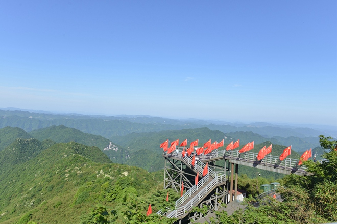 党员同志们沿着石阶而上,登上娄山关观景平台极目远眺,群峰险峻,山势陡峭,一夫当关、万夫莫开的雄关险隘令人震撼!风中红旗猎猎,耳边似乎响起马蹄声声,军号阵阵,仿佛再现当年红军在娄山关与敌军激烈战斗的情景……
