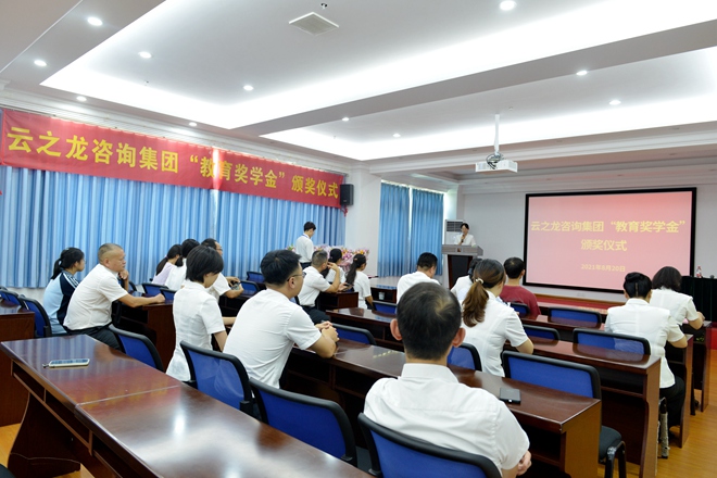 2021年8月20日,云之龙咨询集团举办第三届“教育奖学金”颁奖典礼,为在中考、高考中取得优异成绩并获得重点高中、大学录取的7名员工子女颁发奖学金,鼓励他们好好学习,为理想而努力奋斗。
