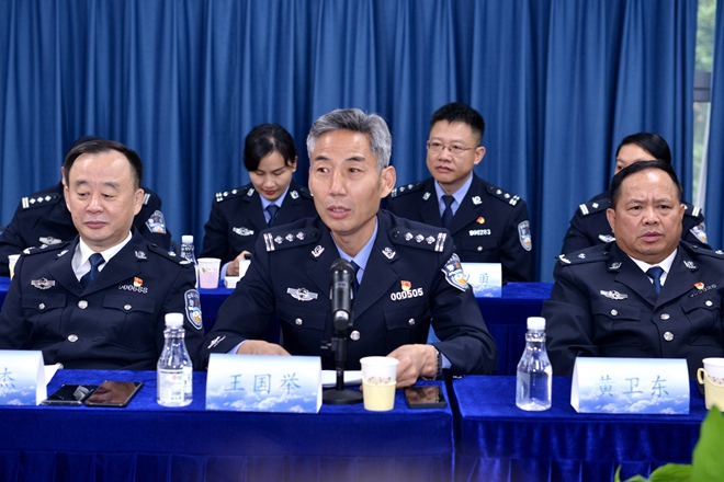 广西公安厅警务保障部副主任兼装备处处长王国举向大家介绍了公安厅警务保障部党总支部在建党百年中的维稳工作成效,以及在党史学习教育、队伍教育整顿工作等方面取得的成绩。他指出,联学联建活动意义重大,是贯彻落实习近平总书记“七一”重要讲话精神的有益尝试,是巩固深化开展党史学习教育活动的重要契机。我们要以联学联建作为加强交流学习的重要平台,高水平推进党建工作和业务工作深度融合。