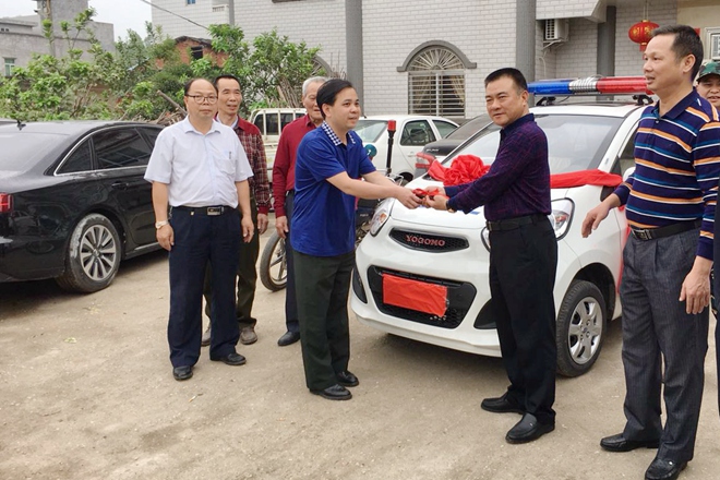 此外,集团还给坡心村治安联防队送去了一台四轮电动巡逻车,有效助力了该村的治安联防工作。