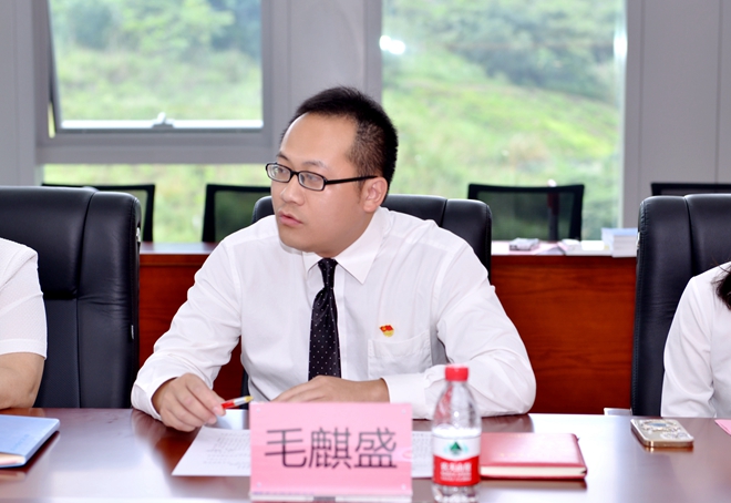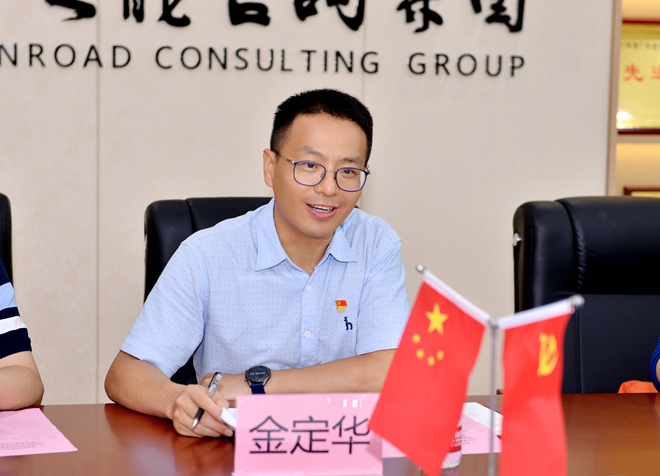 金定华书记详细介绍了福彩中心第一党支部党建工作情况,他说:“今天福彩中心第一党支部党员来到云之龙学习取经,共同持续推动联学联建,更好地将双方党建工作做出特色、做出亮点,推动双方党建工作持续发展。”