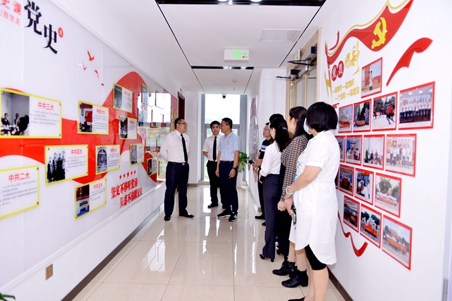 活动开始前,毛麒盛书记带领福彩中心第一党支部党员参观云之龙的办公环境、党建长廊、文创展区等,为大家介绍集团业务、企业文化和党建工作。