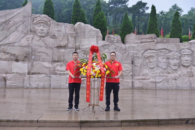 当天,湘江战役纪念园内青松苍翠,大雨磅礴。云之龙党总支部副书记韩俊、组织委员蒙舒芸、宣传委员蒋银亮,以及办公室党支部书记毛麒盛、玉林分公司党支部书记刘柱冒雨前来纪念园。大家怀着对革命先烈无比崇敬的心情,缅怀红军烈士雕像,向烈士雕像敬献花篮并默哀、三鞠躬。
