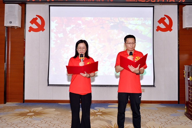 办公室党支部书记毛麒盛带领党员重温入党誓词。一句句铿锵誓词不断激励和鼓舞每一位党员同志,坚定力量信念,时刻保持初心,坚守使命。