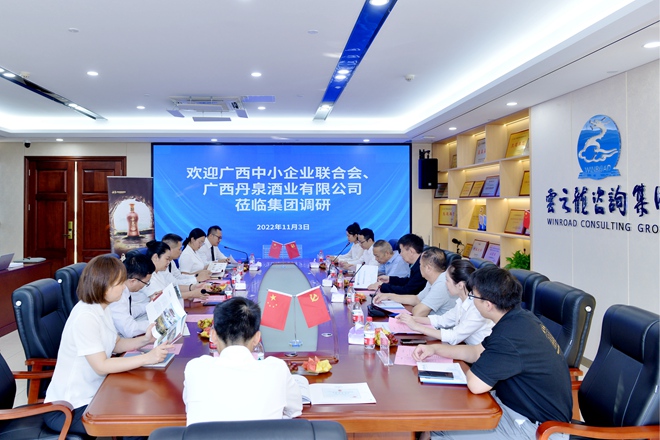 2022年11月3日,广西丹泉酒业集团到云之龙咨询集团参观调研。双方就经营管理、企业文化、党建工作等方面进行交流学习。