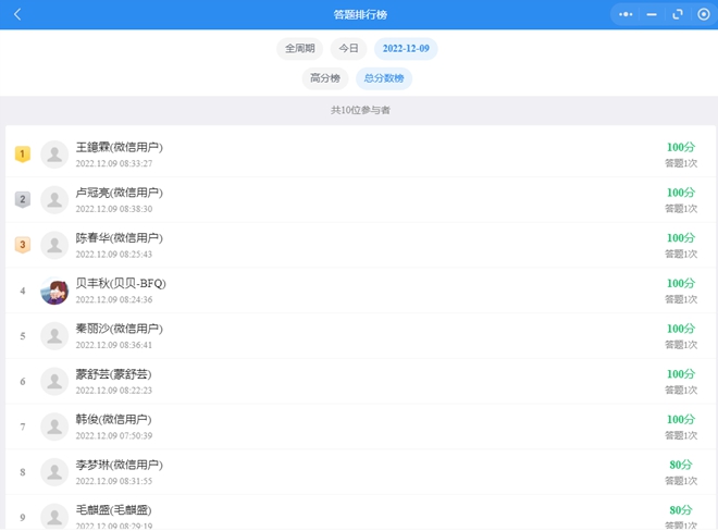 为纪念现行宪法公布施行40周年,响应国家“尊崇宪法、学习宪法、维护宪法、运用宪法”的号召,云之龙党总支在宪法学习周推出“每日宪法知识闯关答题”小活动。党员每日答题1次,答题内容为宪法基础知识。活动期间党员们积极参与线上答题,并晒出分数,通过以练促学、以学促用,丰富了党员们关于宪法的基本常识,提升广大党员队伍遵法、学法、守法、用法的意识和能力。