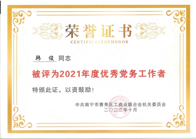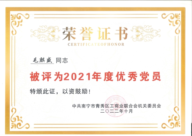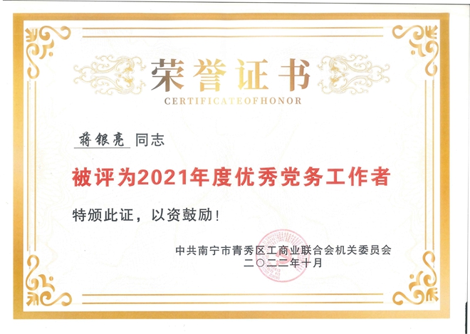 近日,中共南宁市青秀区工商业联合会机关委员会下发了《关于表扬2021年度先进基层党组织、优秀共产党员、优秀党务工作者、宣传工作先进党组织和优秀信息员的决定》,云之龙党总支部荣获先进基层党组织、宣传工作先进党组织等称号。