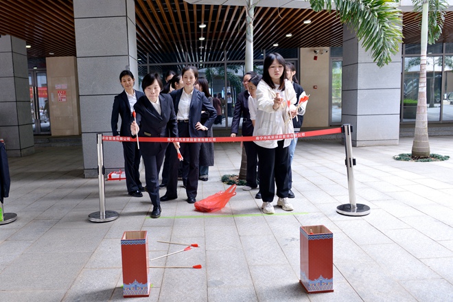 这一次的游园活动,准备了套圈、蒙眼敲鼓、绕口令、原地踏步走、投壶、DIY花束等精彩游戏。不仅如此,云之龙还为女职工们准备了红包和礼品。