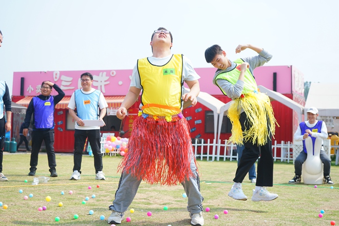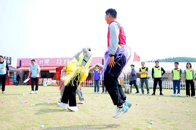 活动中,还准备了“躲猫猫、抖臀达人、蜻蜓点水、沙包掷准、坐地起身”等趣味游戏,100多人分为6个小组,团结协作,互相比拼,赢取积分,拿下胜利果实。