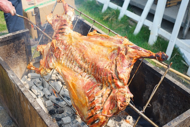 工程师们玩得不亦乐乎,吃得也十分尽兴,烤全羊、烤猪、烤鱼、烤生蚝、烤串,还有水果和零食,让大家在品尝美食中,放松身心。
