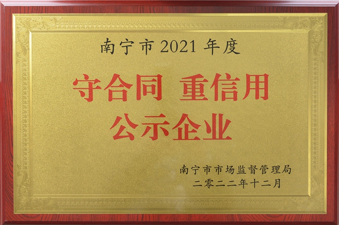 南宁市市场监督管理局颁发“守合同重信用企业”