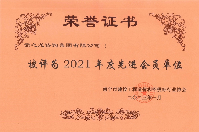 南宁市工程造价和招标投标行业协会颁发“先进会员单位”