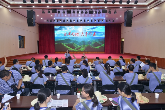 这一次的廉洁教育活动,形式新颖,“走新”又“走心”。活动当天,党员同志来到南宁市七坡林场,沉浸式体验廉政教育主题剧本游《叩问初心》。大家换上蓝白劳动T恤,戴上草帽,挎上“为人民服务”的斜挎包,迅速“穿越”到20世纪80年代。