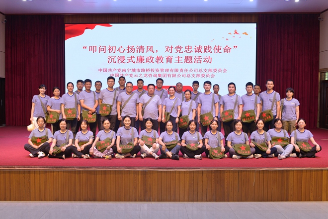 为深入学习贯彻党的二十大精神,进一步加强党员的党性修养,从思想上筑牢拒腐防变的思想防线,2023年9月20日,云之龙咨询集团党总支部与南宁路桥公司党总支部开展“叩问初心扬清风,对党忠诚践使命”沉浸式廉洁教育主题活动。