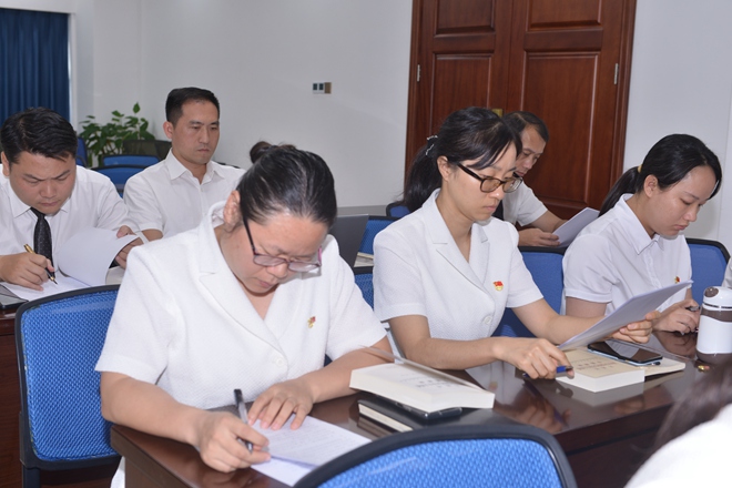 会上,全体党员在蒙舒芸委员的带领下,集体学习《习近平新时代中国特色社会主义思想专题摘编》。