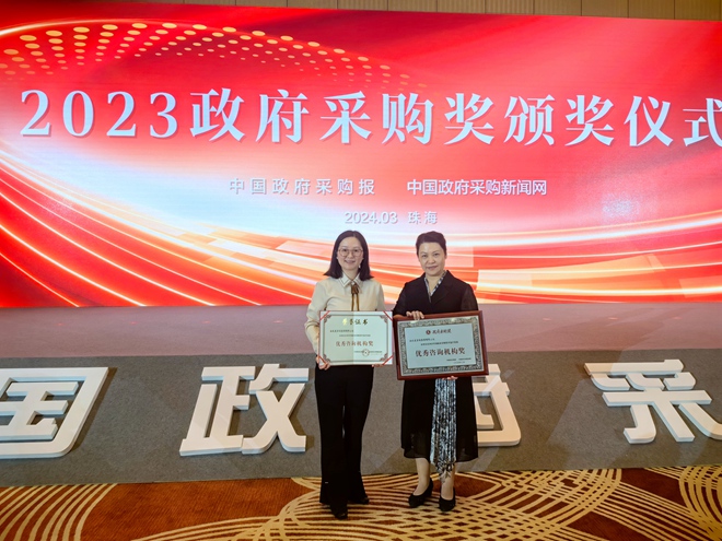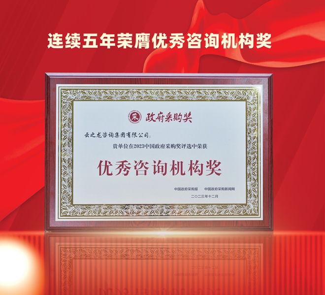 会议对在2023年度政府采购实践中涌现出的先进集体和优秀个人进行颁奖,云之龙咨询集团名列其中,再次获得由中国政府采购报、中国政府采购新闻网颁发的优秀咨询机构奖,这是云之龙连续第五年荣获该奖项。