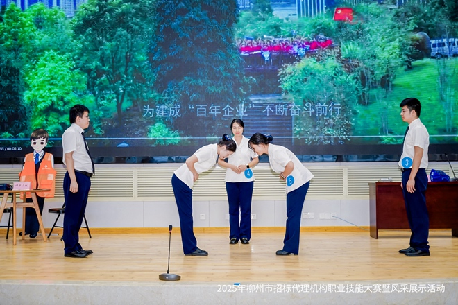 比赛中,云之龙柳州分公司参赛团队围绕评审流程模拟、突发事件应对、电子招标操作等关键环节,展现出扎实的专业功底和良好的临场应变能力。在风采展示环节,团队创新演绎企业歌曲《奋斗者之歌》手语舞,以整齐的动作和饱满的精神面貌,生动诠释了云之龙人的专业形象与企业文化,赢得了评委和观众的广泛好评。