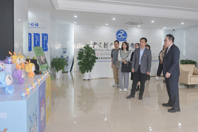 活动伊始,广西开放大学(广西信息职业技术学院)数字经济与管理学院党总支一行来到云之龙咨询集团总部大楼,共同参观了云之龙总部办公区、企业文化展厅与党建长廊,深入了解云之龙的发展历程、企业文化及在政府采购咨询领域的专业实力与人才需求。通过实地走访,校方对企业的业务生态和用人标准有了更直观的认识,为后续精准对接人才培养与就业需求奠定了坚实基础。