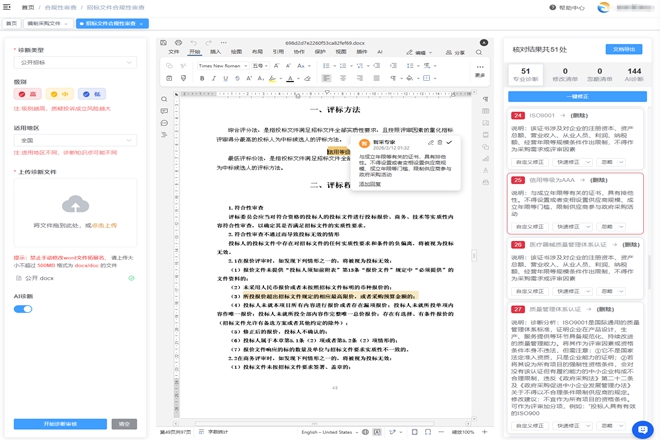 快速编制采购文件+合规预警