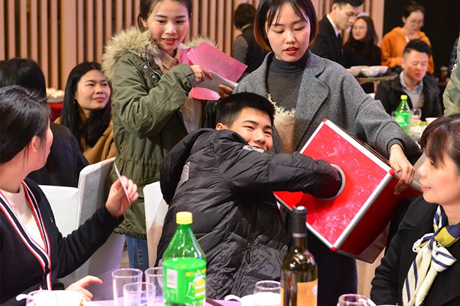 除此之外,今年团拜会最大的亮点是集团品牌运营中心为大家献上的新春祝福视频。晚宴开场前,集团董事会及各部门员工出现在大屏幕上,一句句温暖的祝福直入心底,现场顿时温馨而喜庆。该贺岁视频是品牌运营中心在短短三天里,组织集团总部各部门精心录制和剪辑,各部门积极响应,发挥创意,让整场晚宴锦上添花。