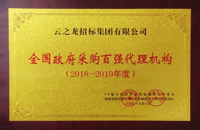 2019年7月27日,从第14届全国政府采购监管峰会上传来喜讯,云之龙集团荣获“全国政府采购百强代理机构”奖。