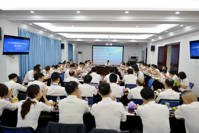 为做好政府采购及工程全过程咨询工作,加强两大新业务研发,2019年10月18日,云之龙集团召开全过程咨询业务研讨会,集团总裁王镱霖及集团中高层领导、项目经理、客户经理等参加会议。